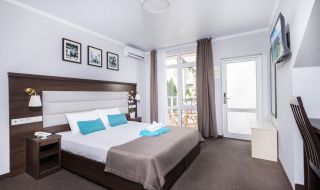 На территории располагаются 10 корпусов с 310 номерами разных категорий с современным оснащением. В каждом номере – чай, кофе и вода. В отеле одинаково уютно чувствуют себя и молодежные компании, и романтические пары, и семьи с детьми.
